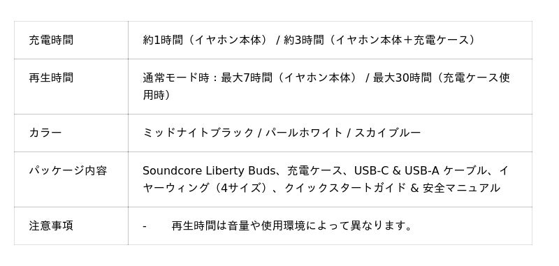 米国・日本・欧州を中心にデジタル関連製品でトップクラスの販売実績を誇るAnkerグループの日本法人、アンカー・ジャパン株式会社(本社:東京都千代田区、代表取締役CEO:猿渡歩)は、オーディオ&ビジュアルブランド「Soundcore」において、アクティブノイズキャンセリングを搭載したインナーイヤー型の完全ワイヤレスイヤホン「Soundcore Liberty Buds」を2025年11月13日(木)よりAnker Japan 公式オンラインストア(製品ページ:https://www.ankerjapan.com/products/d1200)、直営店 Anker Store、総合オンラインストアAmazon.co.jp(製品ページ:https://www.amazon.co.jp/dp/B0FHBCNSP3)、楽天市場(製品ページ:https://item.rakuten.co.jp/anker/d1200/)および一部家電量販店等において販売を開始いたします。