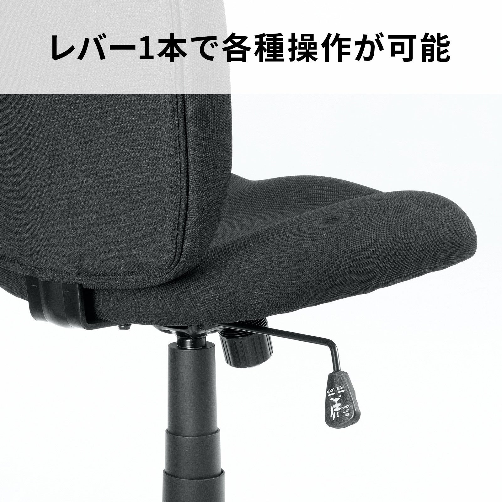 レバー1本で座面の高さ調節、ロッキングの固定・解除ができます。