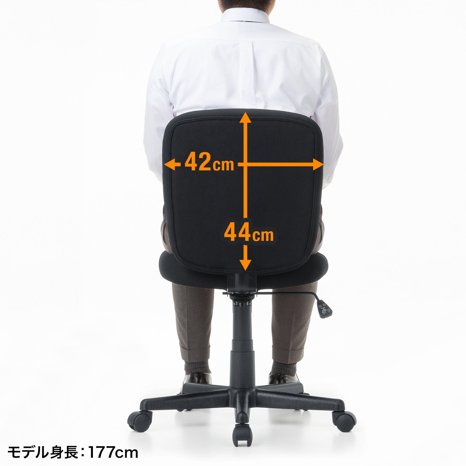 ゆったり座れるサイズの座面と、背中をしっかりサポートする幅広の背もたれを採用しています。