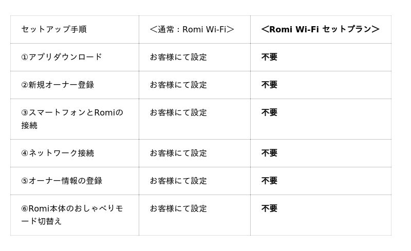今回、より多くの方がストレスなくRomiとの生活を始められるように、「設定の手間を完全になくす」という新たな価値を実現すべく、Global Gateway社と共同で本サービスを開発しました。