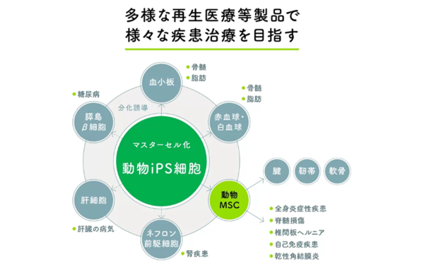 同社の特徴は、動物専用に最適化された「高品質なiPS細胞」を量産できる点だ。犬や猫のような動物では、ヒトやマウスと違い、細胞をリプログラミングしても不安定になりやすく、長期培養や安全性の確保が難しいとされてきた。