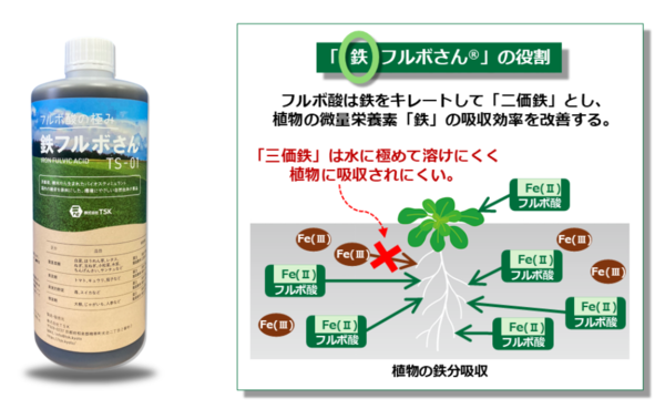 とはいえ、ディープテックはすぐに収益化できない。そんな中、TSKが世に出したのが、植物の活力剤「鉄フルボさん」だ。ネーミングのゆるさに反して中身は本格派。鉄イオンと栄養に富むフルボ酸を組み合わせた農業資材として、じわじわ支持を集めている。