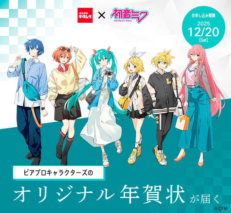 株式会社カメラのキタムラ(本社:東京都新宿区、代表取締役 社長執行役員:山崎 智彦)は、全国に展開するカメラのキタムラで、ピアプロキャラクターズとコラボし、初音ミク達がデザインされた年賀状が届くサービスを2025年11月1日~12月20日までの期間限定で受付けいたします。