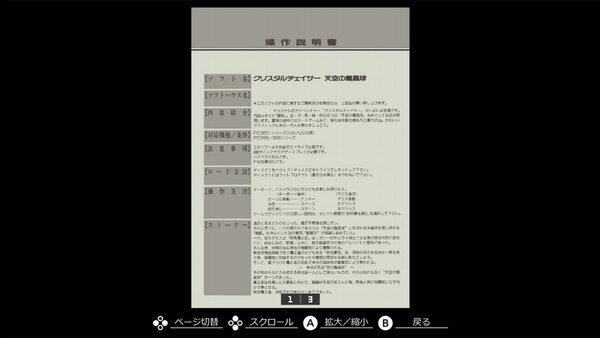 『EGGコンソール クリスタルチェイサー~天空の魔晶球~-R PC-9801』は、原作版の貴重なパッケージデザインやマニュアルをいつでも閲覧できる「ギャラリーモード」に対応。