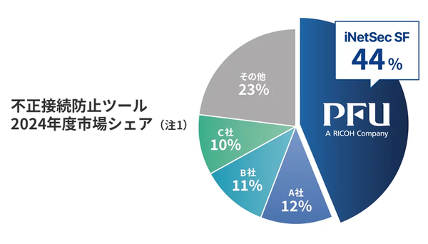 PFUは2025年11月12日、セキュリティ対策アプライアンス「iNetSec SF」が不正接続防止ツール市場において7年連続※シェアナンバーワンを獲得したと発表。
