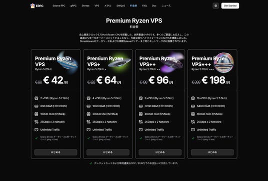 ERPC、Premium Ryzen VPS に新構成 16コア・64GB が登場。Solana マルチリージョン展開需要の高まりを受け提供開始
