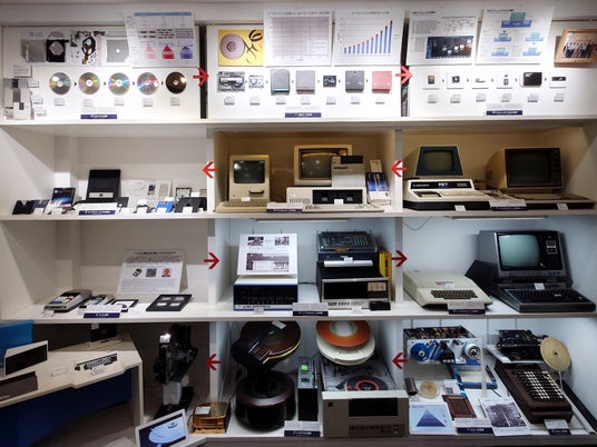 規格が古くなり今ではあまり使われなくなった記録媒体や、情報通信社会以前に主流だった新聞やテレビなどのメディアを指す言葉です。