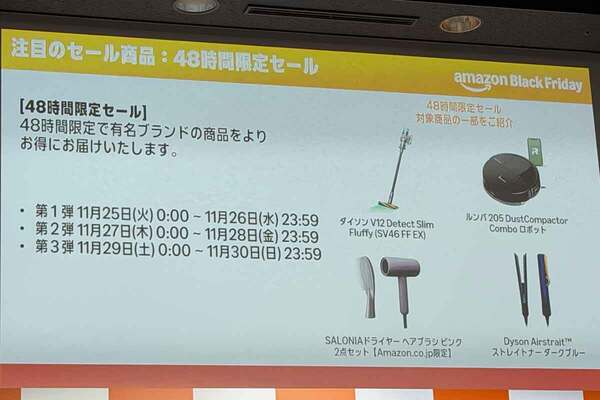 好評の先行セールも11月21日0時から11月23日23時59分までの3日間開催する。さらに、セールに登場する注目商品の展示や抽選会などを楽しめるイベント「Amazon Black Friday Market」を、11月21日から3日間限定で東京・六本木ヒルズアリーナにて開催する。