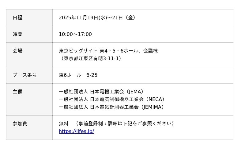 兼松エレクトロニクス株式会社(社長:渡辺 亮、本社:東京都中央区 以下KEL)は、2025年11月19日(水)~11月21日(金)に東京ビッグサイトで開催される「IIFES2025 オートメーションと計測の先端技術総合展」に出展します。