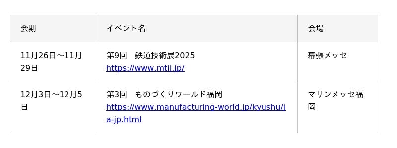 製造業DXの推進とセキュリティ対策の両立が求められる中、KELは全国各地の製造業ご担当者に最適なソリューションをご紹介するため、以下のとおり展示会への出展を計画しています。ご来場者様と直接お会いする機会を通じて、製造現場特有の課題をお伺いすることで、より良いご提案とサポートに努めてまいります。