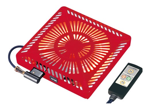 レトロな外観の真っ赤な植毛ガードに加え、赤い光がコタツ布団の中をやさしく照らし、視覚的なあたたかさをもたらします。