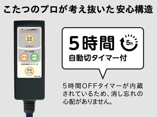 「5時間自動切タイマー」…消し忘れの心配がなく安心
