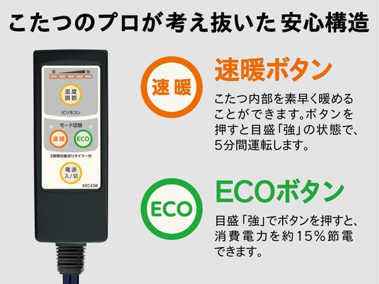 「速暖ボタン」…コタツ内部を素早くあたためる