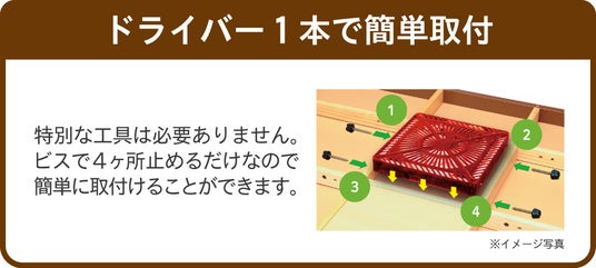 薄型設計で、家具調コタツをはじめ市販の多くのコタツに取り付け可能。