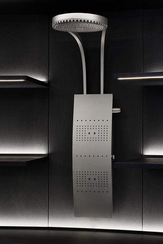 ファインバブルと水流を生み出す緻密な設計と壮大なスケールが融合することでかつてない入浴体験を叶え、重厚な存在感と洗練された造形が、空間に揺るぎない風格をもたらすオーバーヘッドシャワーです。
