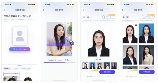 ・自然な笑顔を自動生成:履歴書写真撮影時の緊張で表情が不自然になりがちな問題を解決し、好印象を与える表情に自動補正