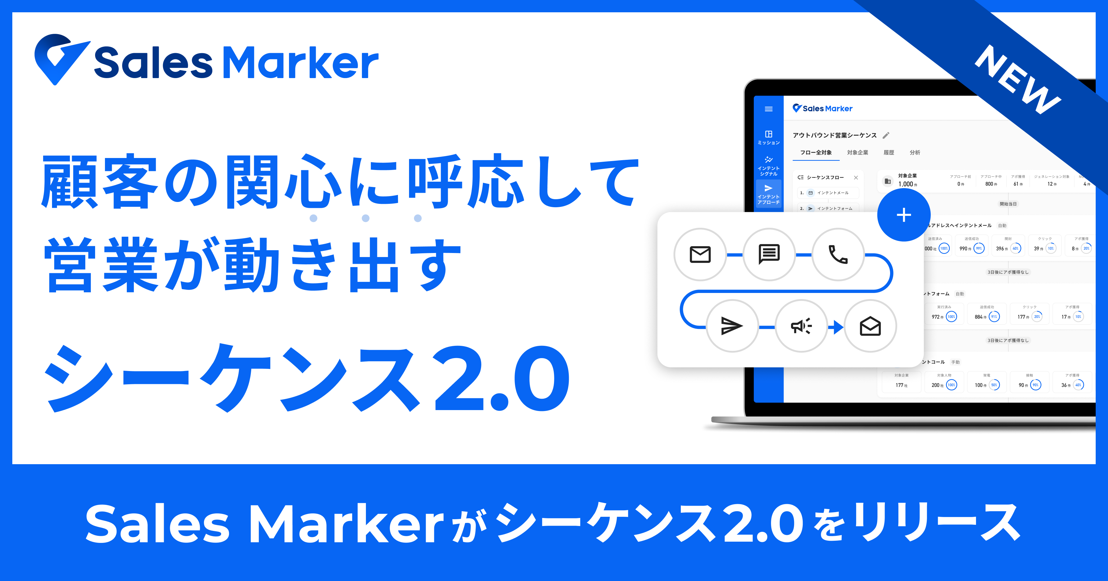 顧客起点で営業やマーケティング活動を戦略的に自動化する国内初※1の成長モデル「インテントセールス」を実現する『Sales Marker(セールスマーカー)』。その開発元である株式会社Sales Marker(本社:東京都渋谷区、代表取締役 CEO:小笠原 羽恭、以下:当社)は、本日、営業活動の効率化と成果最大化を支援する、国内Sales Tech初※2の新機能「シーケンス2.0」を正式にリリースしました。