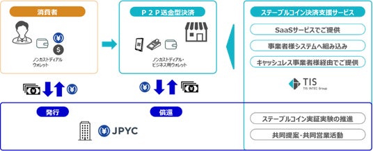 当社が持つステーブルコインの発行・償還におけるノウハウや、TISのweb3領域やブロックチェーン技術における開発・営業力を活かし、ステーブルコイン決済の普及に向けた新サービス開発の検討、顧客開拓や関連する新規ビジネスの創出を図ります。