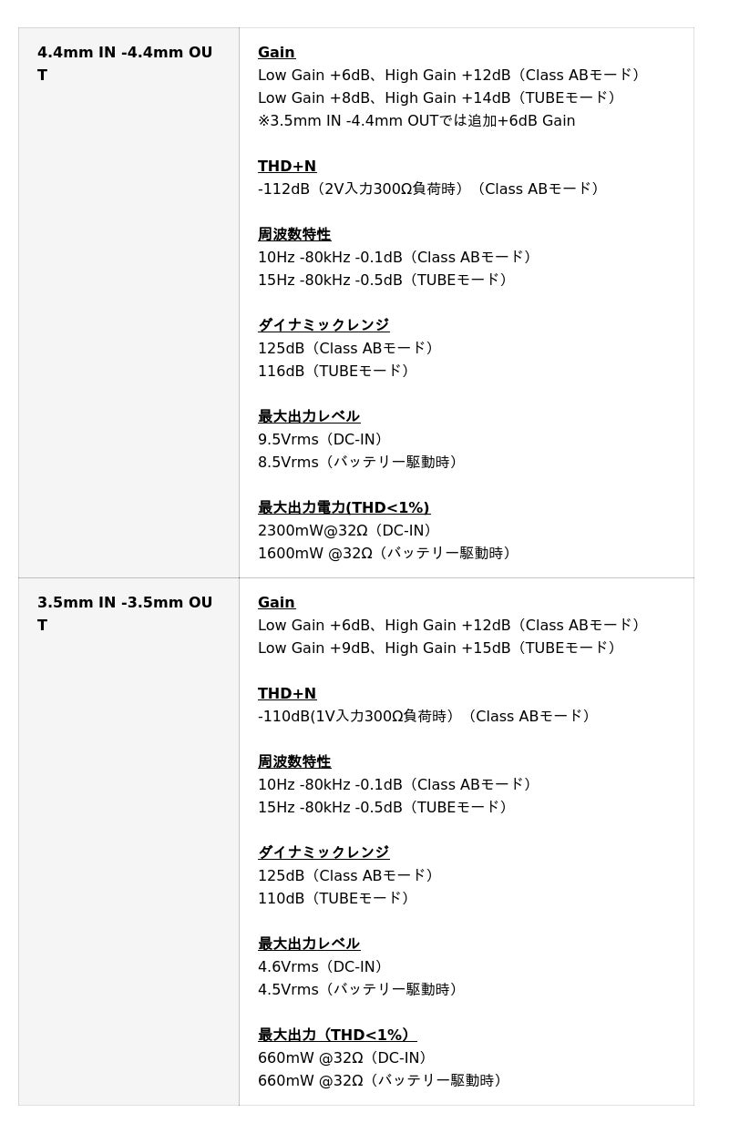 32Ω負荷時で最大2300mW+2300mWの高出力を実現することで、フルサイズのヘッドホンや高インピーダンスヘッドホンも容易に駆動することができ、重厚で力強い低域と優れたトランジェントレスポンスを提供します。