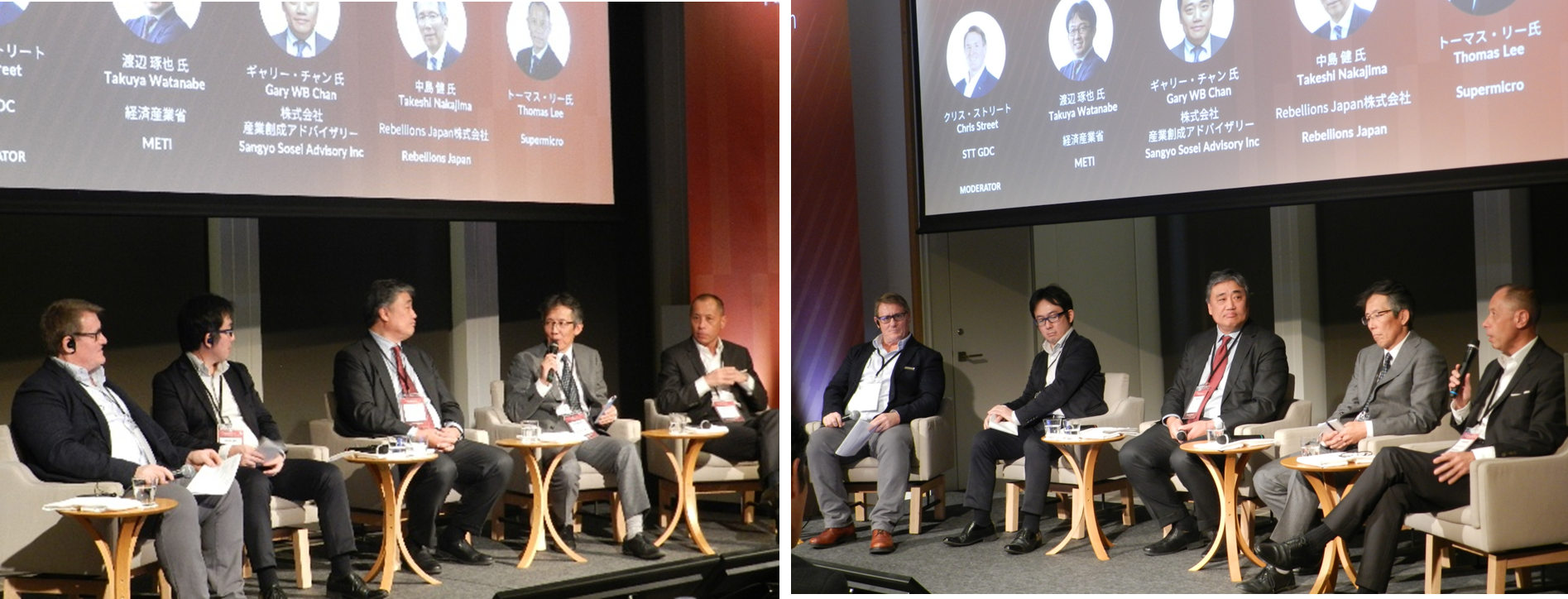 最後に、STT GDCのGroup Chief Revenue Officerであるクリス・ストリート、経済産業省の渡辺 琢也氏、株式会社産業創成アドバイザリーのギャリー・チャン氏、Rebellions Japan株式会社の中島 健氏、Supermicroのトーマス・リー氏が登壇し、AI社会の実装に向けた課題と展望について語りました。