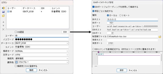 SSH接続に対応しました。ログイン画面の「SSH」ボタンより、SSHホストやポート、秘密鍵などの接続設定を行うことで、Oracle Cloud Infrastructureの踏み台(Bastion)経由やポートフォワーディングを用いたセキュアな環境へもデータベース接続が可能です。