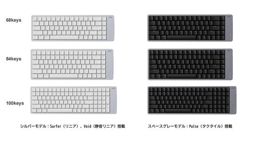 また、シルバーモデルには「Surfer(リニア)」および「Void(静音リニア)」、スペースグレーモデルには「Pulse(タクタイル)」を搭載しております。