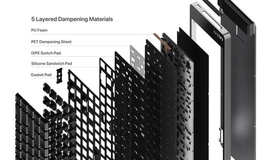 新設計のケースには5層の制震素材を内蔵し、キー入力の衝撃を効果的に吸収し、ガスケット構造による柔らかな反発感と静かな打鍵音を両立させました。