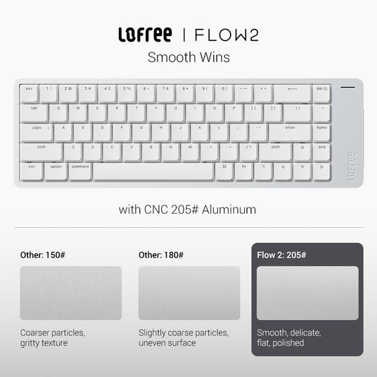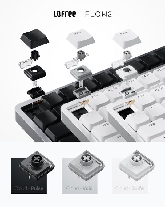 本製品は、CNC加工と205グリットのアルマイト処理で仕上げた高精度アルミニウムボディを使用し、Lofreeが実施したユーザー調査に基づいて開発されたCloudシリーズスイッチを搭載したことにより、軽やかでしっかりとした打鍵感を実現しました。