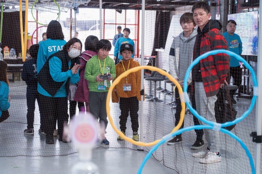 ドローンを操作し、設定されたコースをクリアして得点を獲得。スコアに応じて景品がグレードアップするゲーム性を取り入れ、操作を通して集中力・空間認識力・挑戦心を育みます。終了後はドローンと一緒に記念撮影も可能です。