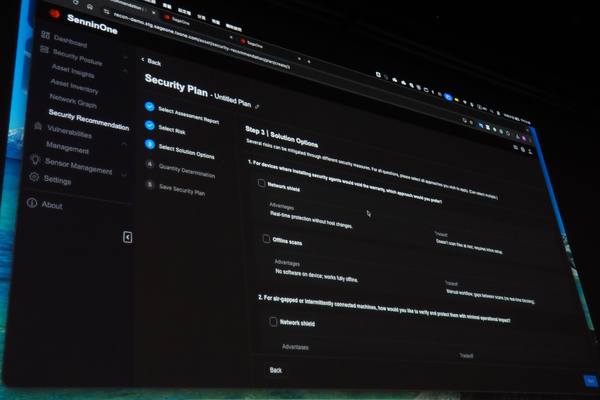 SenninOneでは、OT環境のアセスメントレポートの作成機能や、リスク緩和のために推奨されるアクションプランをまとめた「セキュリティプラン」の策定サポート機能も備えている。セキュリティプランでは、同社のエッジ保護デバイス、Edgeシリーズ(IPS、ファイアウォールなど)の導入や連携も含めた、包括的な改善策が提案される。