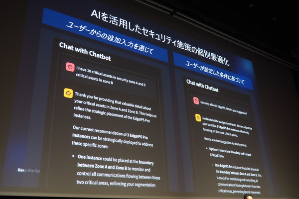 最後にリュウ氏は、OTセキュリティにおける生成AIの活用方針について触れた。OTセキュリティには、ここまで紹介してきたような「複雑さ」「運用上のリスク」がある。生成AIを通じてベストプラクティスやノウハウを共有し、こうした課題の解消をサポートすることで、セキュリティ防御を実現していく方針だと語った。