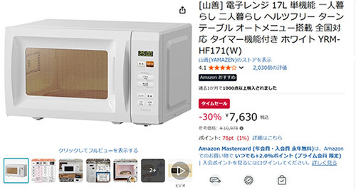 とにかく「安くて使いやすい電子レンジ」が欲しい人にぴったり。山善(YAMAZEN)の単機能電子レンジ「YRM-HF171(W)」が、Amazonタイムセールに登場しました。
