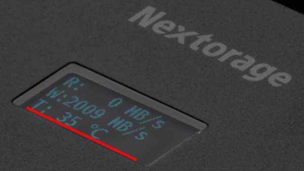 本製品の大きな特長として、データ転送速度やSSD温度をリアルタイムで表示できる点が挙げられる。これにより作業中の転送状況や発熱状態がひと目で確認でき、効率的かつ安全にデータ管理が行える。