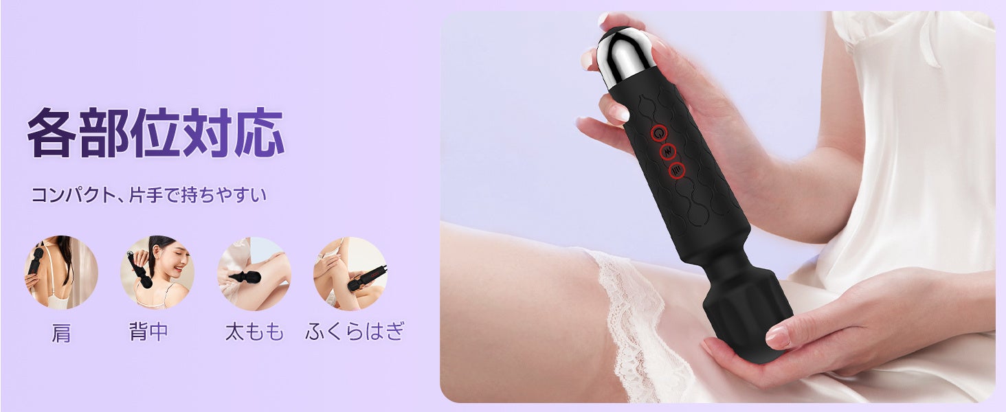 静かに使える静音設計に加え、IPX7防水仕様でお風呂やシャワー中でも使用可能。背中・脚・肩など、多用途に使える万能モデルです。