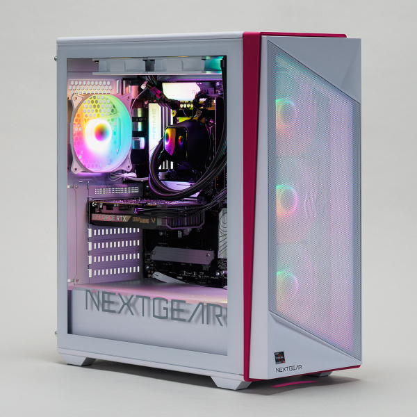 ケースのフレームラインにブランドカラーのスパークマゼンタをあしらった印象的なデザインを採用しているほか、RGBファンやガラスサイドパネルを標準装備しており、視覚的にも楽しめるのが大きな特徴。カラバリはブラックとホワイトの2色展開で、好みや部屋のインテリアなどに合わせて選ぶことができる。ここでは、その中から、17万9800円〜という手頃な価格を実現し、初めての1台にもオススメな「NEXTGEAR HD-A5G60」(ホワイト)をピックアップ。新ケースの使い勝手やオススメのBTOカスタマイズなどを紹介していく。