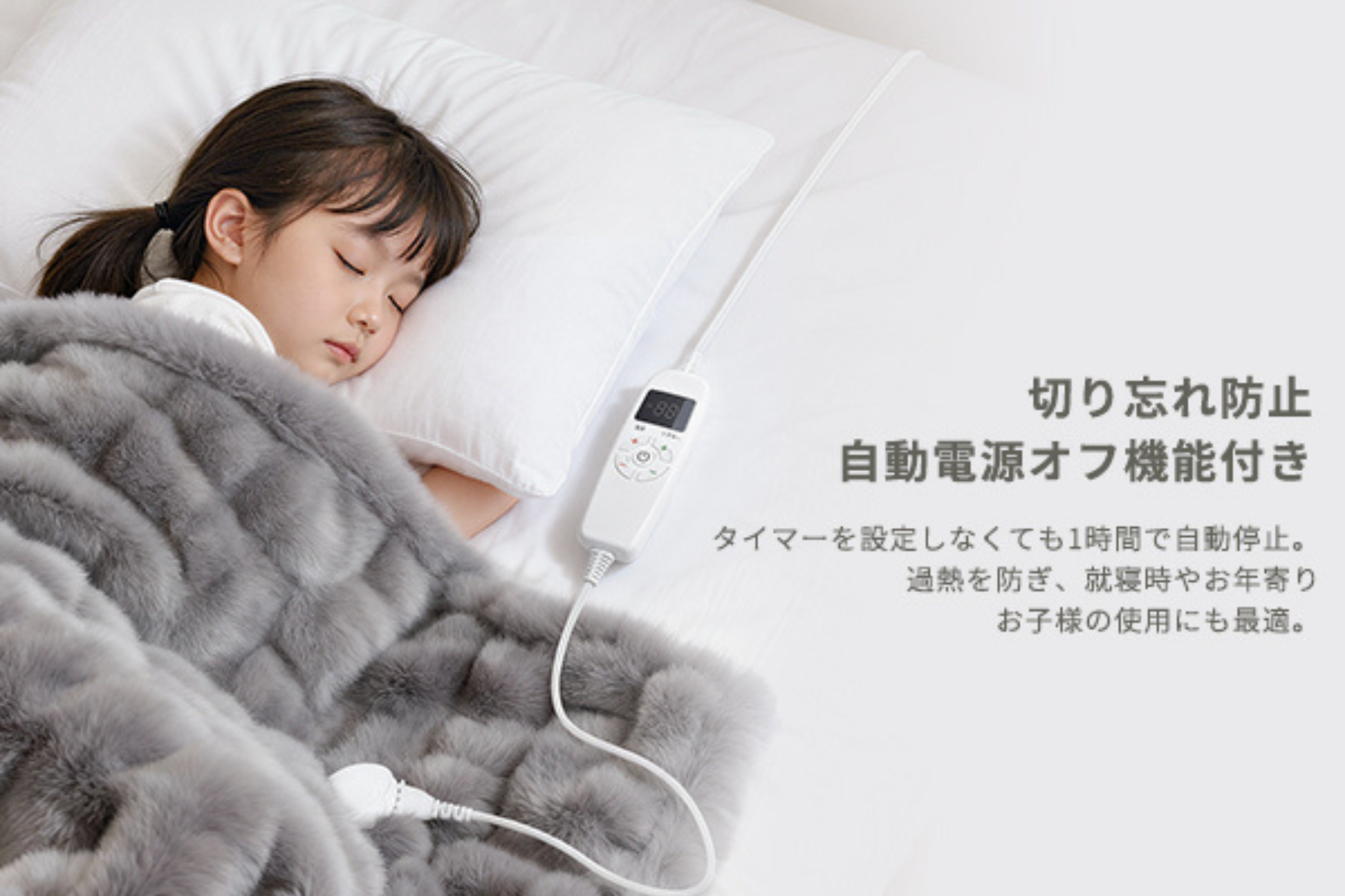 数十年にわたり電気毛布を手掛けてきた専門工場の技術を結集。難燃素材・高品質ヒーター・過電圧保護・漏電保護・過熱断電など、三層構造の安全システムを採用しました。タイマー機能に加え、起動時は1時間後に自動停止する安心設計。PSE認証を取得し、日本の厳しい安全基準をクリアしています。お子様からご年配の方まで、どなたでも安心してお使いいただけます。