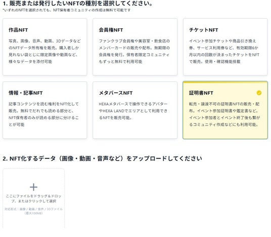 NFTの発行の流れについて https://hexanft.com/issuermanual/