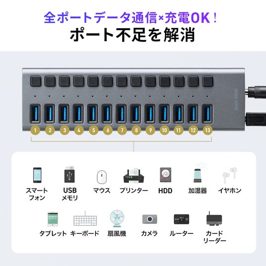 ・最大13ポート搭載で、充電・通信を同時にサポート