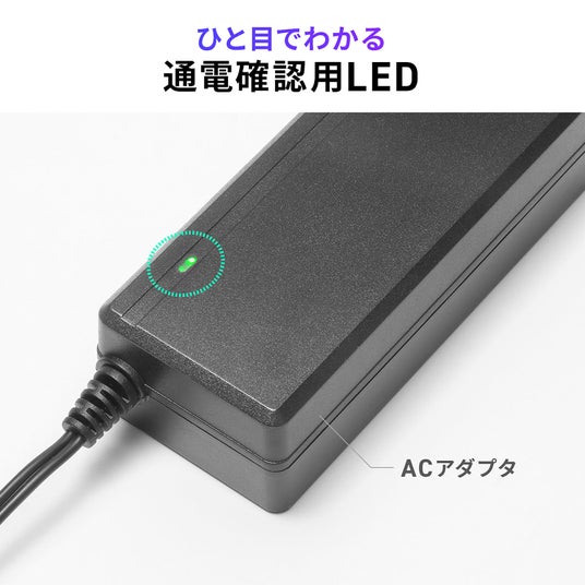 付属のACアダプタを使用したセルフパワー方式を採用。パソコン電源OFF時でもスイッチをONにすれば、スマートフォンやタブレットへの充電が可能です。消費電力の大きい機器も安定して動作するため、信頼性の高い環境を構築できます。