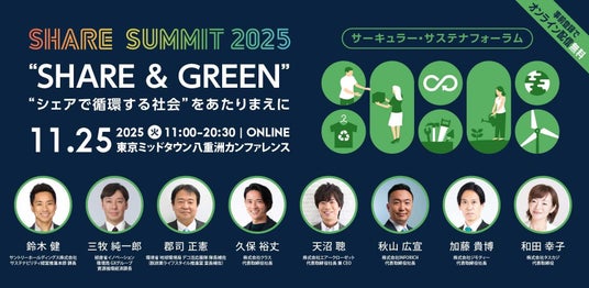 当社は、「FORUM 1サーキュラー・サステナフォーラム “SHARE & GREEN”―”シェアで循環する社会”をあたりまえに」において、12:30~13:00開催のシェアエコ・グリーンフライデーと、13:00~13:50開催のセッション「サーキュラーエコノミーが拓く未来」に代表取締役社長の久保が登壇および、ブース出展いたします。