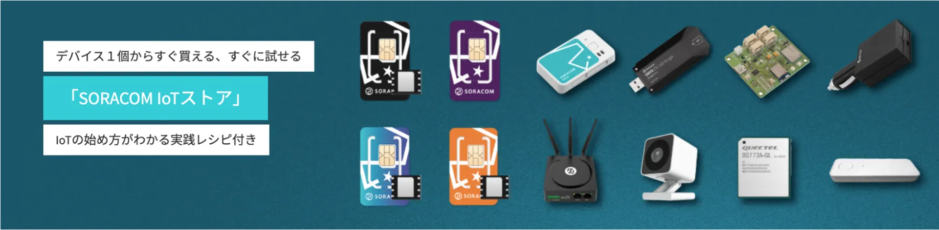SORACOM IoTストアでは、活用実績のあるIoTデバイスを、ウェブサイト上での手続きのみで、買って試すことができる、IoTデバイス通販サイトです。