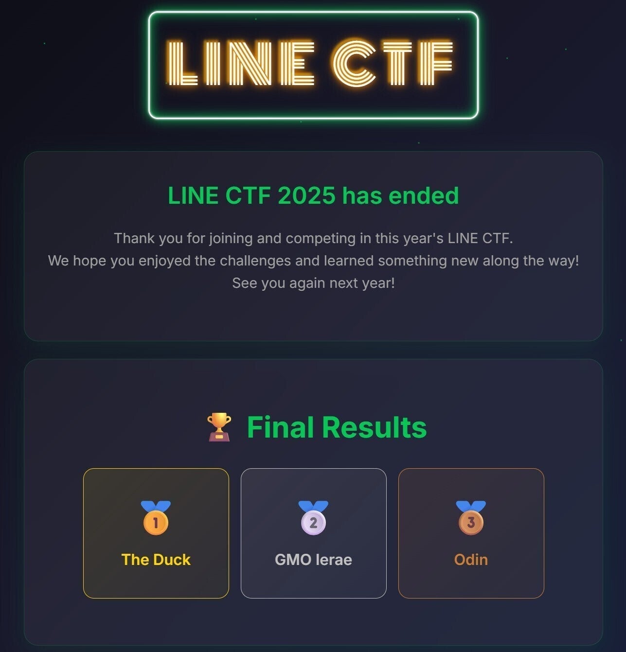 惜しくも世界2位という結果になりましたが、開催経験も豊富で著名なCTFである「LINE CTF」において入賞できた点については素直に嬉しいです。