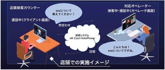 アバター接客システム「xR Cast HoloPhone」と連携することで、有人リモート接客にも対応しております。