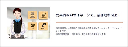 お客様のお悩み事に応じて、3DCGのバーチャル店員によるご案内を行う自動応対システムです。