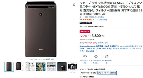 シャープのハイグレード加湿空気清浄機「KI-SX75-T」が、Amazonのタイムセールに登場しました。