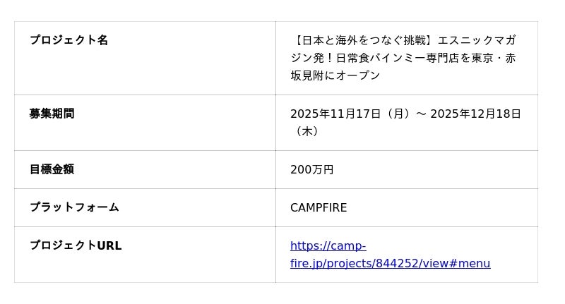 「多文化理解は、まず美味しいバインミーから」。この挑戦に、皆様の温かいご支援を心よりお願い申し上げます。
