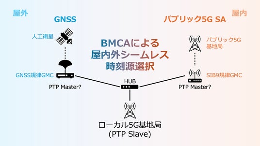 ローカル5G基地局の時刻源を、GNSSに基づくGMCとソフトバンクのパブリック5G SA SIB9に基づくGMCの2つに冗長化した構成を構築することで、GNSS信号が受信できない状況下においてもSIB9に基づく時刻同期を利用して柔軟かつ安定にローカル5Gを運用できることが確認できました。
