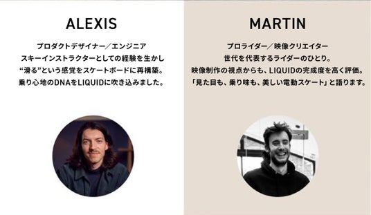 「liquid SKATEBOARD」は、在デンマーク・フランス人のスキーインストラクター、フランスのプロライダー、プロダクトデザイナーたちが集結して開発されました。「電動スケートボードを、もっとシンプルに、もっと自由にしたい」という想いからスタートし、初期スケッチからプロトタイプによる徹底的なテストを経て完成しました。