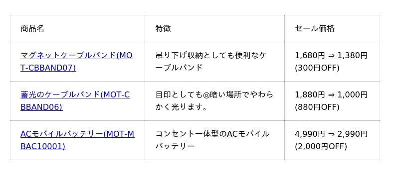 セール対象の注目アイテム!(抜粋)
