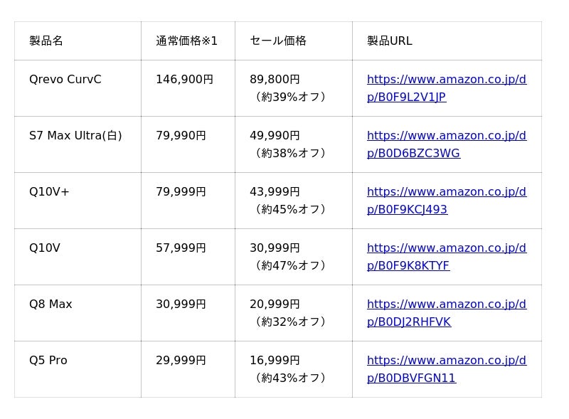 【主なセール対象製品】